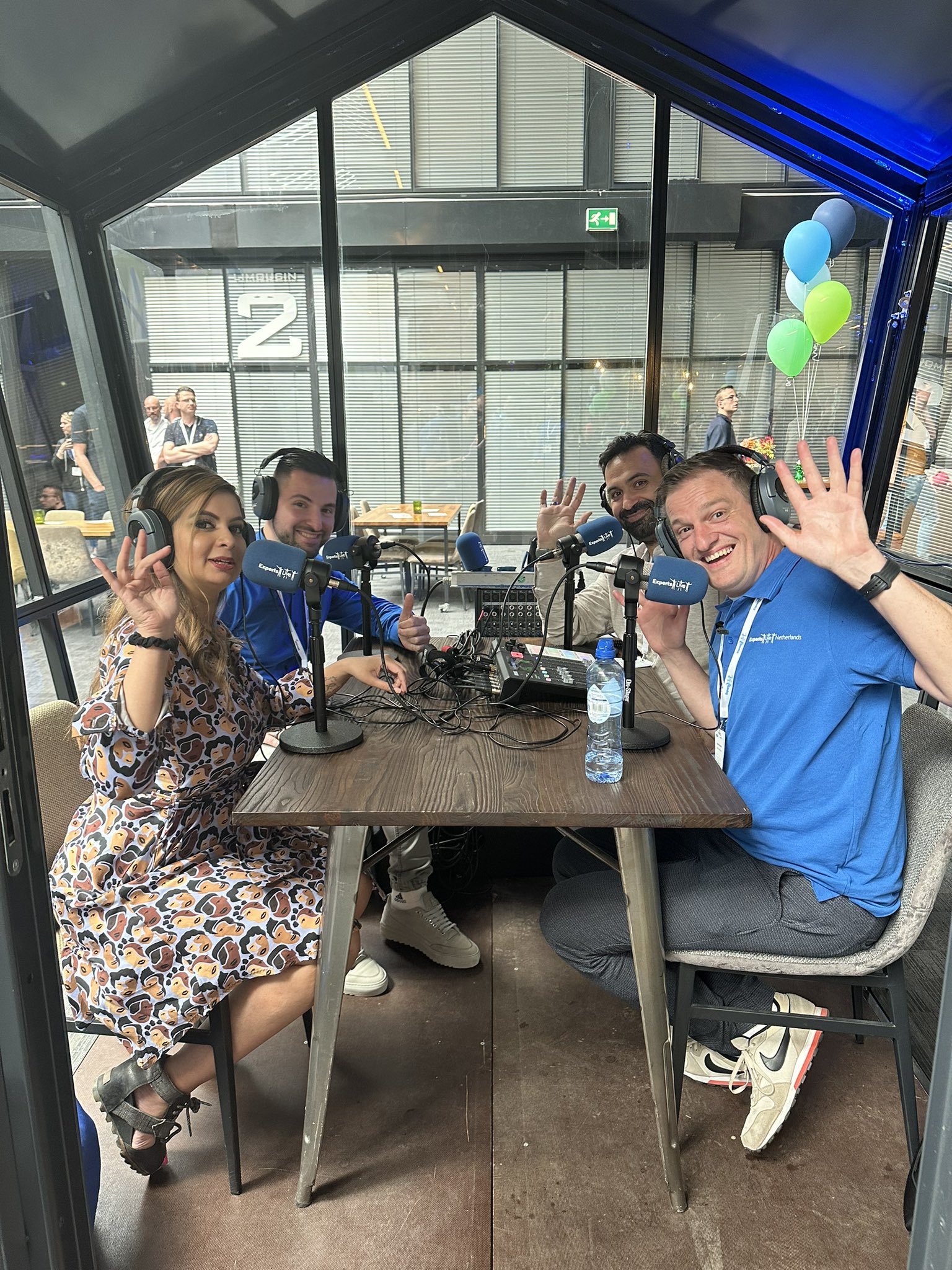 The first sessions started at 8:00 and at 9:00 Dona Sarkar opened the keynote. The day flew by. Before I knew it it was almost 14:00 and that was time to go into the podkas. Podkas? Yes, a real greenhouse with a table and chairs where various podcasts could be recorded. So, we, as the WorkplaceDudes, could also record a podcast there. Earlier in the day, we asked Dona Sarkar to join us, me, Engin Soyal and Richard Sousa Ferreira, at the table and then Harm Veenstra came to the table to talk. That show is now online.